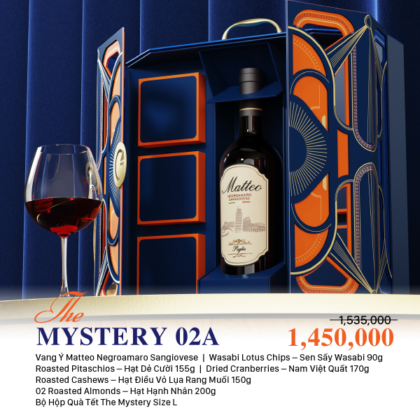 qua-tet-2025 (1)Combo này khởi đầu với chai Vang Ý Matteo Negroamaro Sangiovese, một loại vang đỏ nổi tiếng, mang đến hương vị phong phú, ngọt ngào từ những trái nho chín mọng. Bên cạnh đó, những hạt điều vỏ lụa rang muối 150g sẽ là món ăn vặt tuyệt vời, giòn tan và đậm đà. Thêm vào đó, những miếng Sen sấy Wasabi 90g mang đến một hương vị độc đáo, cay nồng, chắc chắn sẽ làm hài lòng những tín đồ yêu thích sự mới lạ.